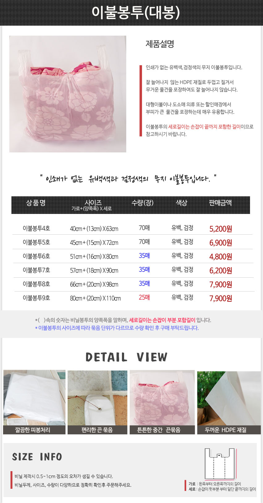 옵션 옵션 선택 이불봉투 4호 유백 70매 이불봉투 4호 검정 70매 이불봉투 5호 유백 70매 이불봉투 5호 검정 70매 이불봉투 6호 유백 35매 이불봉투 6호 검정 35매 이불봉투 7호 유백 35매 이불봉투 7호 검정 35매 이불봉투 8호 유백 35매 이불봉투 8호 검정 35매 이불봉투 9호 유백 25매 이불봉투 9호 검정 25매